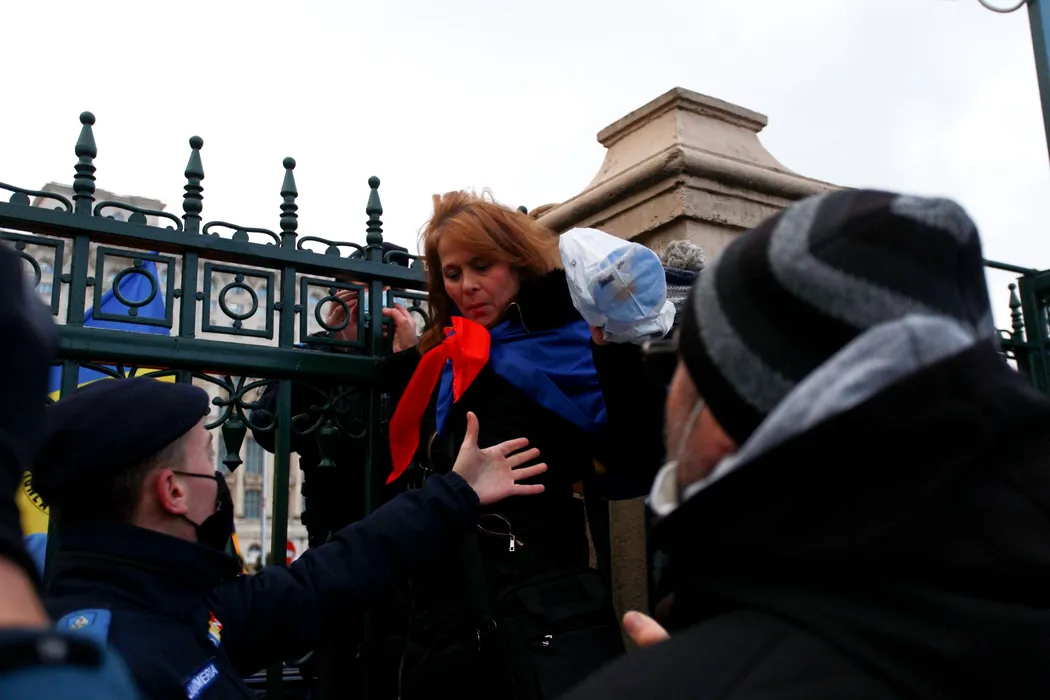 FOTO-VIDEO | Sute de susținători ai AUR protestează față de certificatul verde. Manifestanții au trecut de jandarmi și au ajuns pe scările Parlamentului. Mitingul s-a mutat la Guvern
