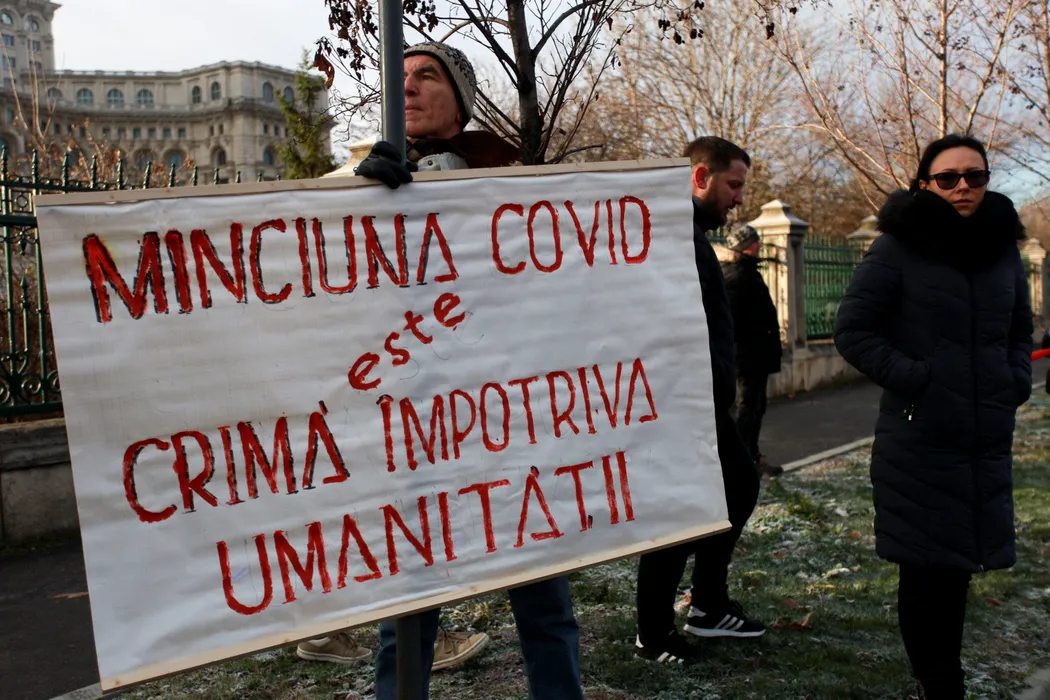 FOTO-VIDEO | Sute de susținători ai AUR protestează față de certificatul verde. Manifestanții au trecut de jandarmi și au ajuns pe scările Parlamentului. Mitingul s-a mutat la Guvern