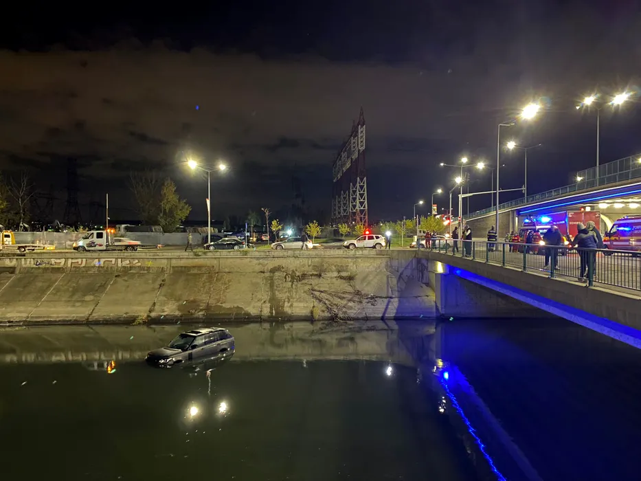 FOTO VIDEO | Un șofer a căzut cu mașina în apă pe Splaiul Unirii din București. Starea bărbatului este bună. El a suferit o ușoară hipotermie