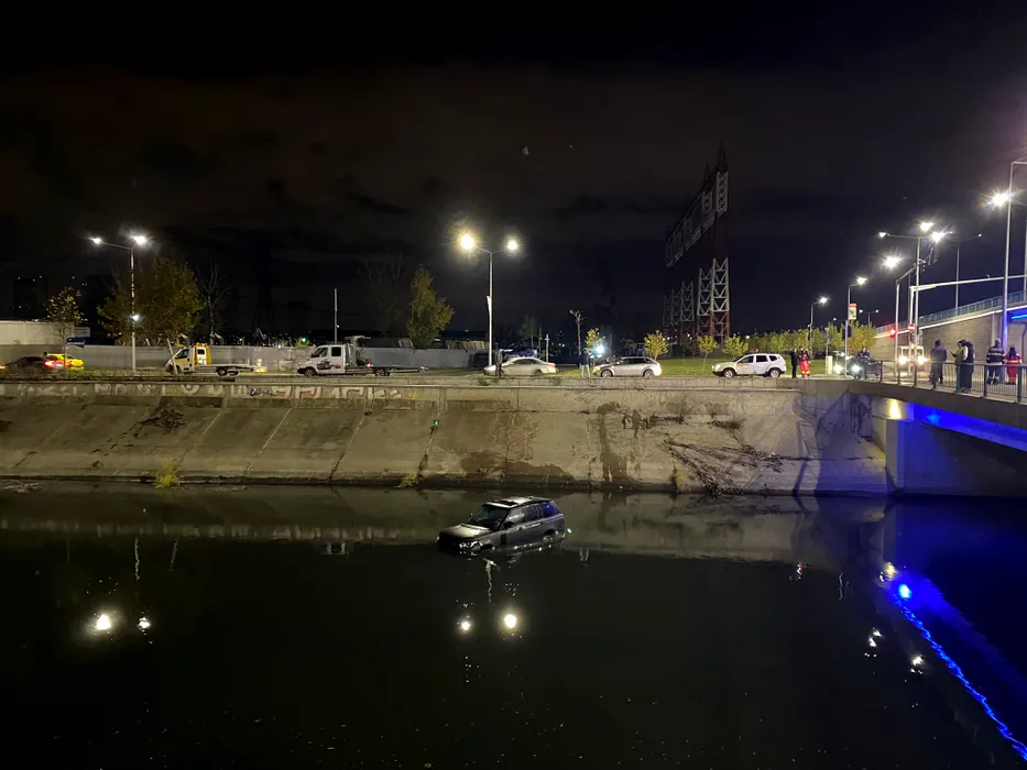 FOTO VIDEO | Un șofer a căzut cu mașina în apă pe Splaiul Unirii din București. Starea bărbatului este bună. El a suferit o ușoară hipotermie