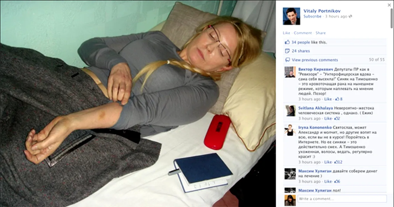 Fotografii cu Iulia Timoșenko bătută, postate pe Facebook. GALERIE FOTO