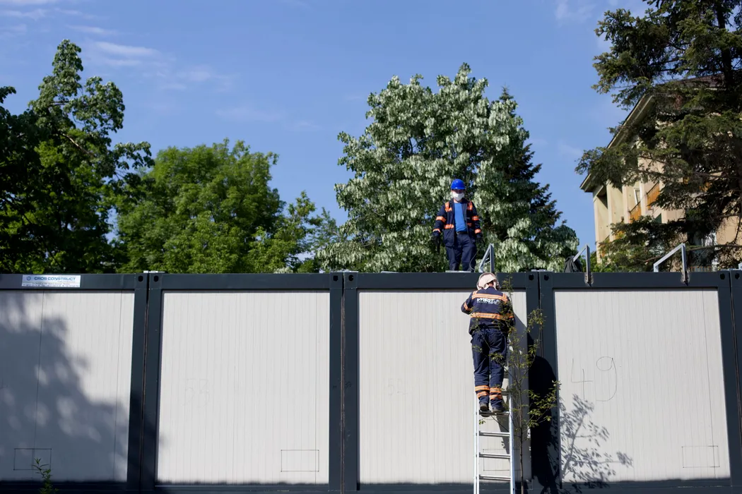 FOTOREPORTAJ. Asociația Dăruiește Viață ridică un spital modular pentru bolnavii de COVID-19 pe care îl va transforma într-unul de mari arși: „Un spital pe care România nu îl are la 5 ani de la tragedia Colectiv”