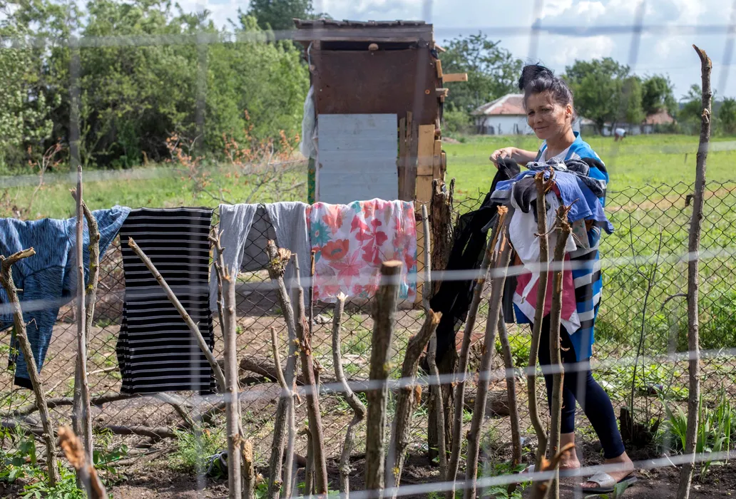 Foto: Mihaela strânge hainele de pe sârmă, înainte să înceapă ploaia