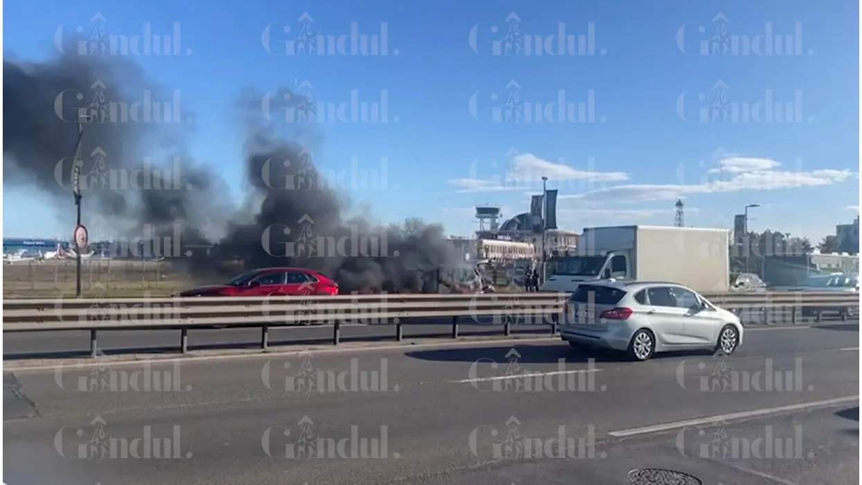 FOTO&VIDEO | O mașină s-a făcut scrum pe DN 1. Pompierii au intervenit de urgență