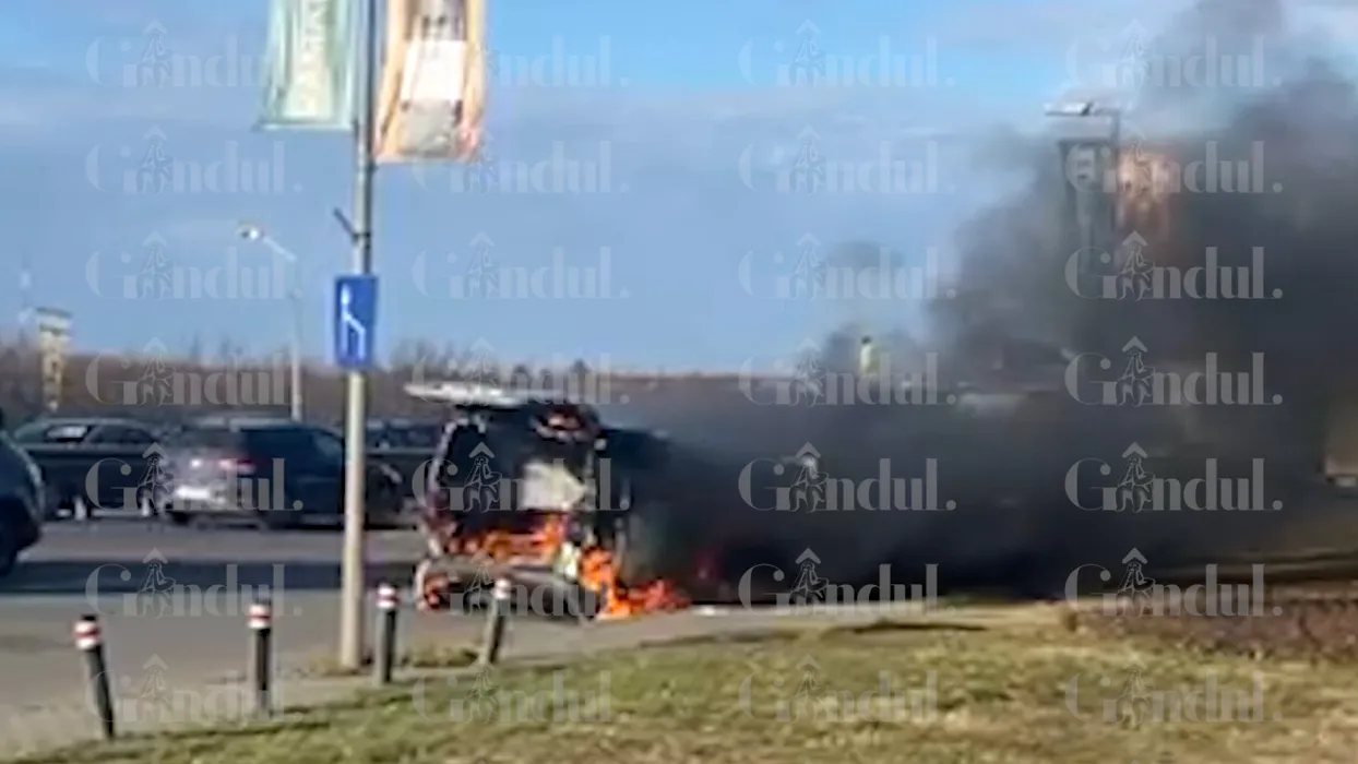 FOTO&VIDEO | O mașină s-a făcut scrum pe DN 1. Pompierii au intervenit de urgență