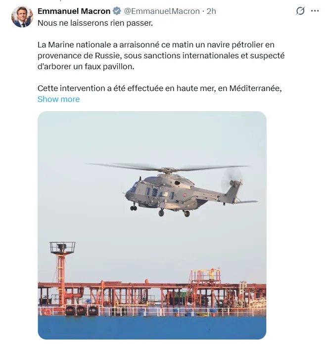 Franța intră în jocul petrolierelor confiscate. Emmanuel Macron anunță că Marina Franceză a confiscat un vas din „flota fantomă” a Rusiei