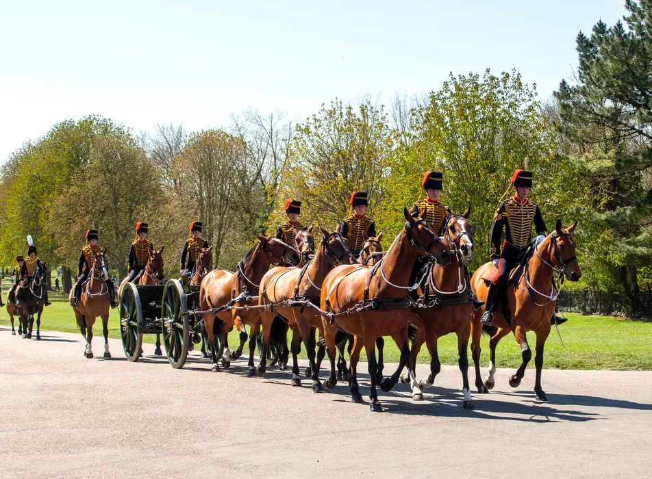 Înaintea înmormântării, călăreții de la King’s Troop Royal Horse Artillery se află la Castelul Windsor, iar personalul militar și gărzile regale și-au luat pozițiile pentru începutul procesiunii regale / Sursă FOTO: Profimedia Images