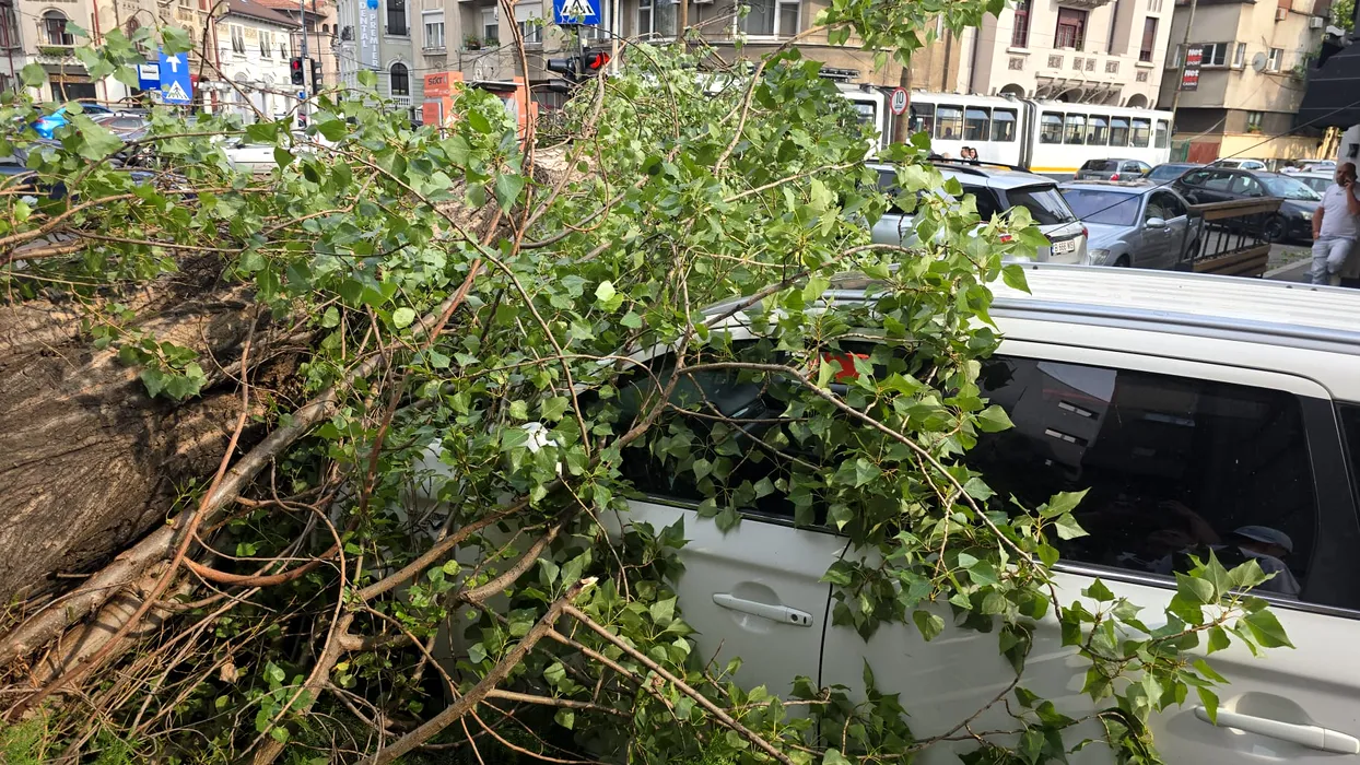 Furtuna a făcut din nou prăpăd în CAPITALĂ. În Otopeni, o femeie a fost ucisă de un acoperiș desprins. Sunt zeci de copaci rupți și mașini distruse