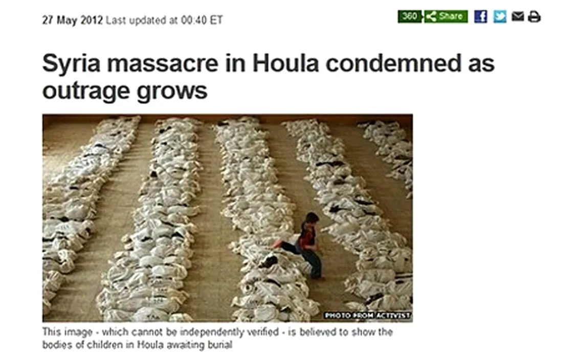 GALERIE FOTO: GAFĂ DE PROPORȚII. BBC a publicat o imagine celebră din războiul din Irak pentru a ilustra o știre despre masacrul din orașul sirian Hula