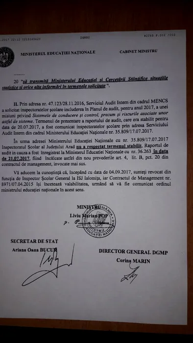Gafă de proporții la Ministerul Educației. Cum a fost demis un inspector de la Ialomița invocându-se un caz de la Arad