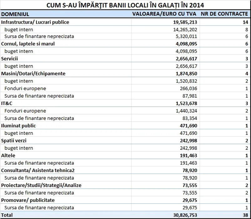 GALAȚI. Unde au mers banii publici în 2014. Topul firmelor care au contracte locale cu statul