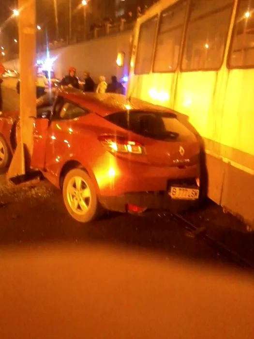 GALERIE FOTO a accidentului grav de aseară, din Pasajul Victoriei. Un tramvai a deraiat, după ce a lovit o mașină care a încercat să întoarcă la ieșirea din pasaj