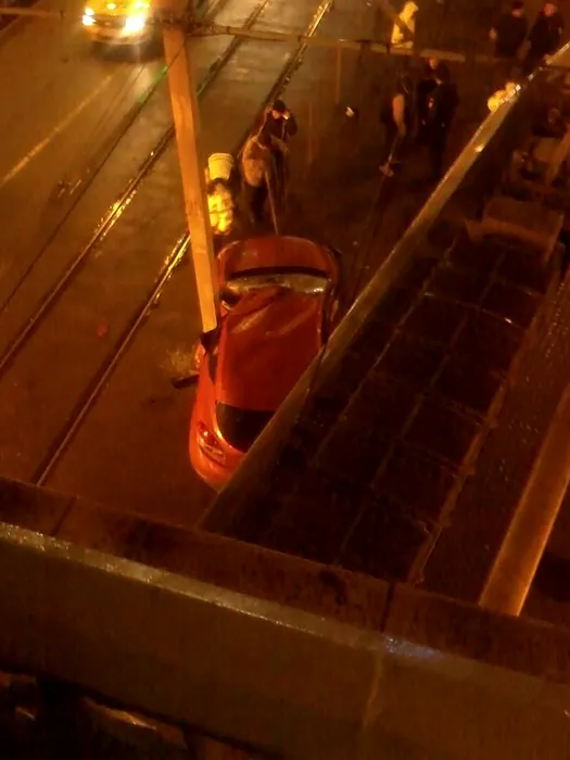 GALERIE FOTO a accidentului grav de aseară, din Pasajul Victoriei. Un tramvai a deraiat, după ce a lovit o mașină care a încercat să întoarcă la ieșirea din pasaj