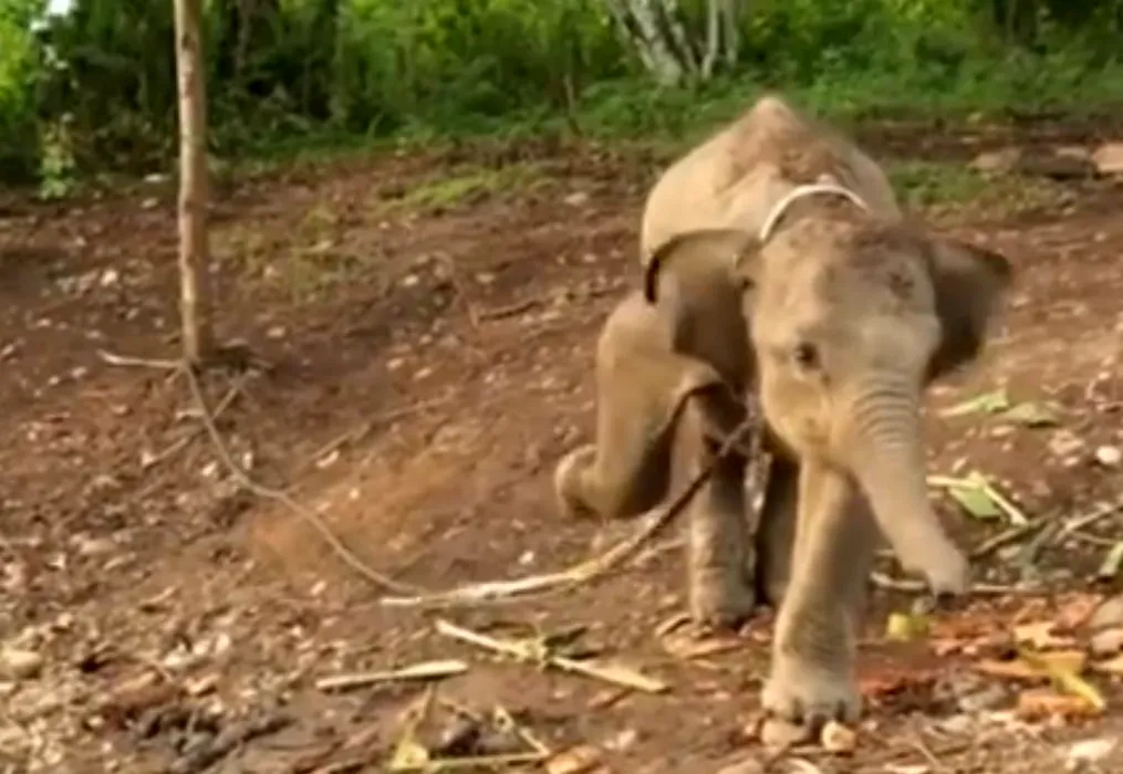 GALERIE FOTO: Act de cruzime în Sumatra. Cum a ajuns în lanțuri un pui de elefant