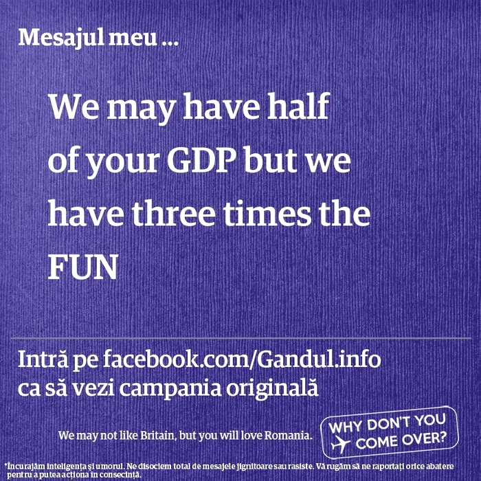 GALERIE FOTO. Afișele făcute de cititorii Gândul în campania „Why don’t you come over?”. Felicitările noastre românilor inteligenți!