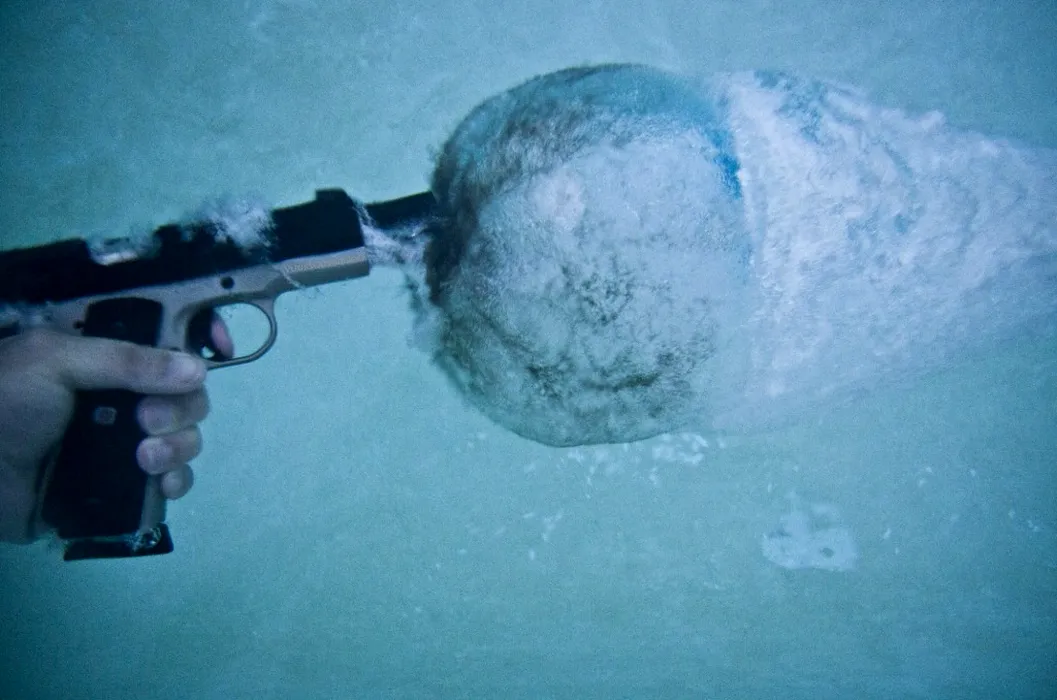 GALERIE FOTO. Ce se întâmplă atunci când tragi cu pistolul în apă. Imagini uluitoare cu efectele create de traiectoria unui glonț