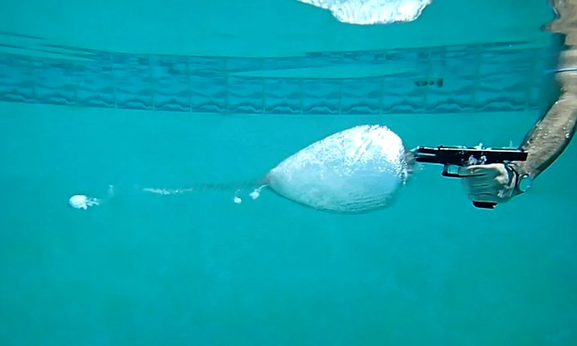GALERIE FOTO. Ce se întâmplă atunci când tragi cu pistolul în apă. Imagini uluitoare cu efectele create de traiectoria unui glonț