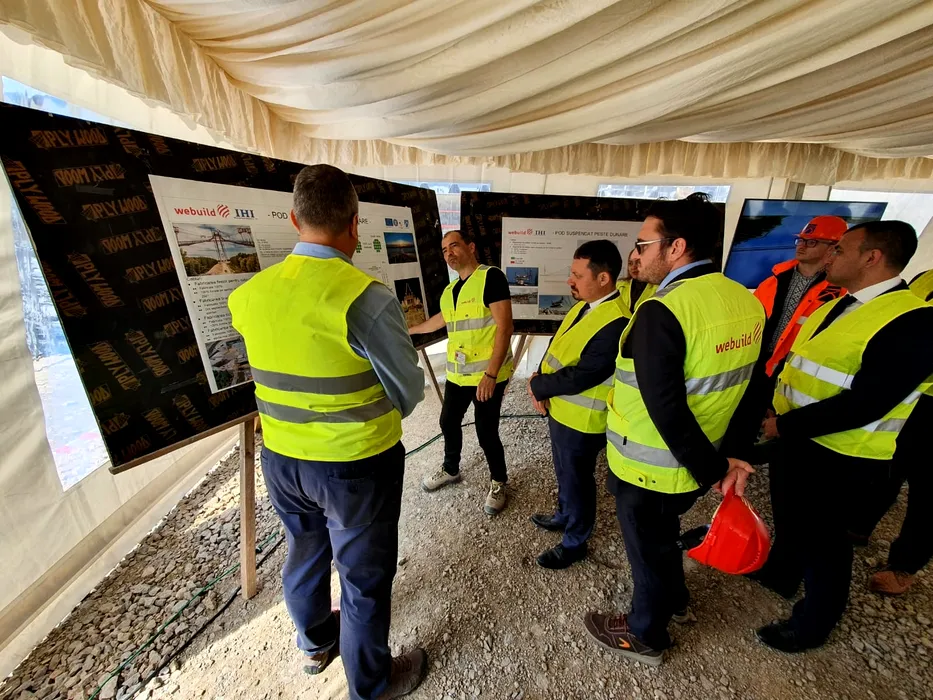 GALERIE FOTO | Cel mai mare pod din România și al treilea din Europa prinde contur. S-a montat un nou segment de tablier la „Golden Gate” de Brăila