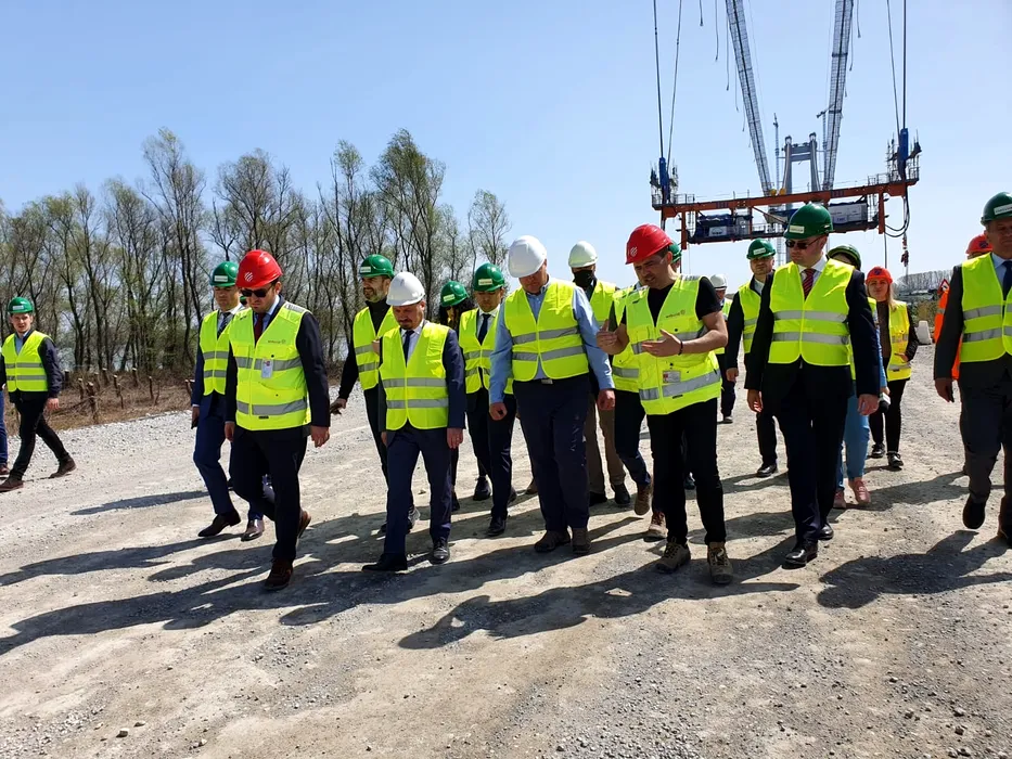 GALERIE FOTO | Cel mai mare pod din România și al treilea din Europa prinde contur. S-a montat un nou segment de tablier la „Golden Gate” de Brăila