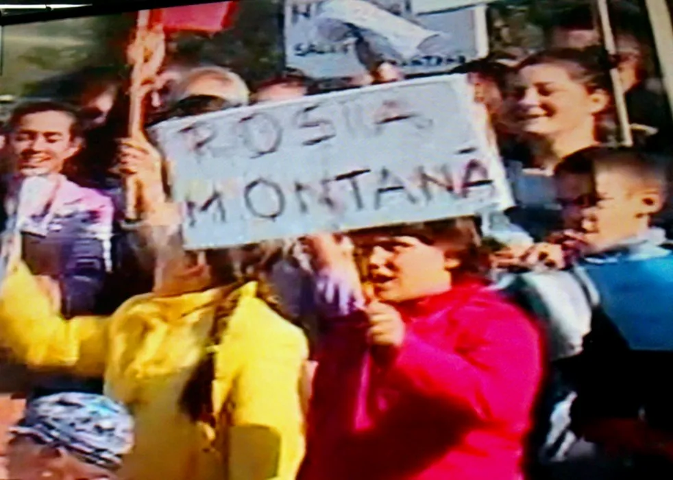 GALERIE FOTO. Copiii, scoși la protest față de proiectul Roșia Montană, într-o comună din Brașov. „Aurul este al nostru și al urmașilor urmașilor noștri”