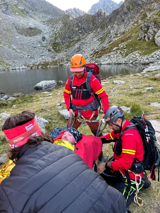 GALERIE FOTO | Cum au fost salvați doi turiști din Făgăraș, din zona lacului Călțun: „Elicopterul nu a reușit să treacă munții”