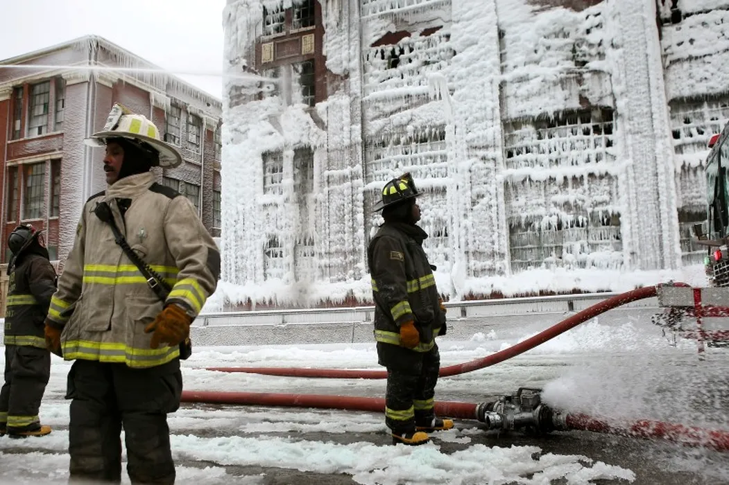 GALERIE FOTO: Cum s-a transformat o clădire în flăcări într-un adevărat cub de gheață. PLUS: Ce s-a întâmplat cu această mașină