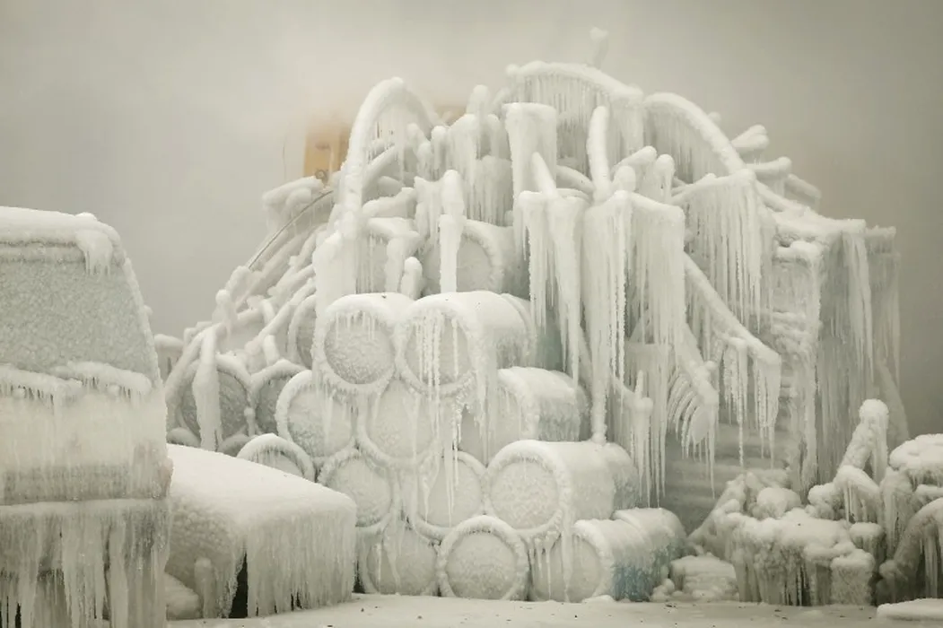 GALERIE FOTO: Cum s-a transformat o clădire în flăcări într-un adevărat cub de gheață. PLUS: Ce s-a întâmplat cu această mașină