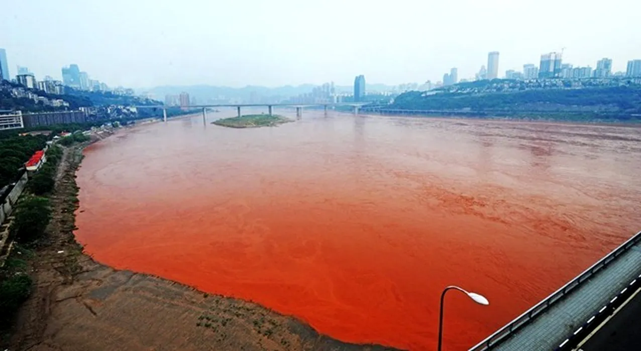 GALERIE FOTO. Fenomen inexplicabil în China. Apele unui fluviu s-au colorat în roșu