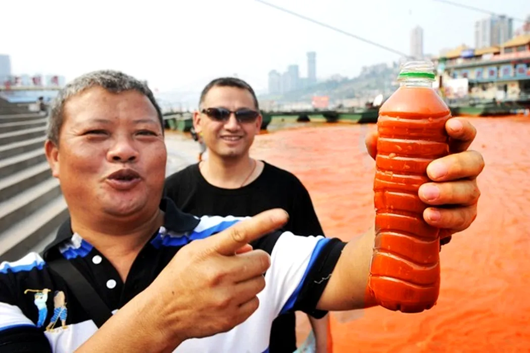 GALERIE FOTO. Fenomen inexplicabil în China. Apele unui fluviu s-au colorat în roșu