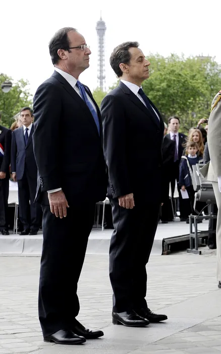 GALERIE FOTO. Francois Hollande și Nicolas Sarkozy, împreună la mormântul soldatului necunoscut. VIDEO