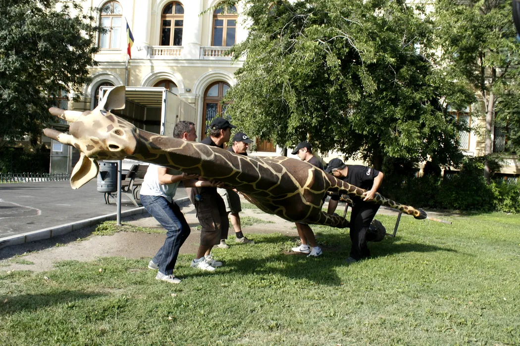 GALERIE FOTO – Girafa de la Antipa a fost reamplasată în fața muzeului