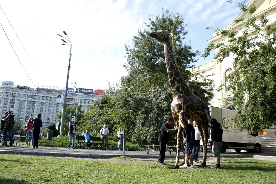 GALERIE FOTO – Girafa de la Antipa a fost reamplasată în fața muzeului