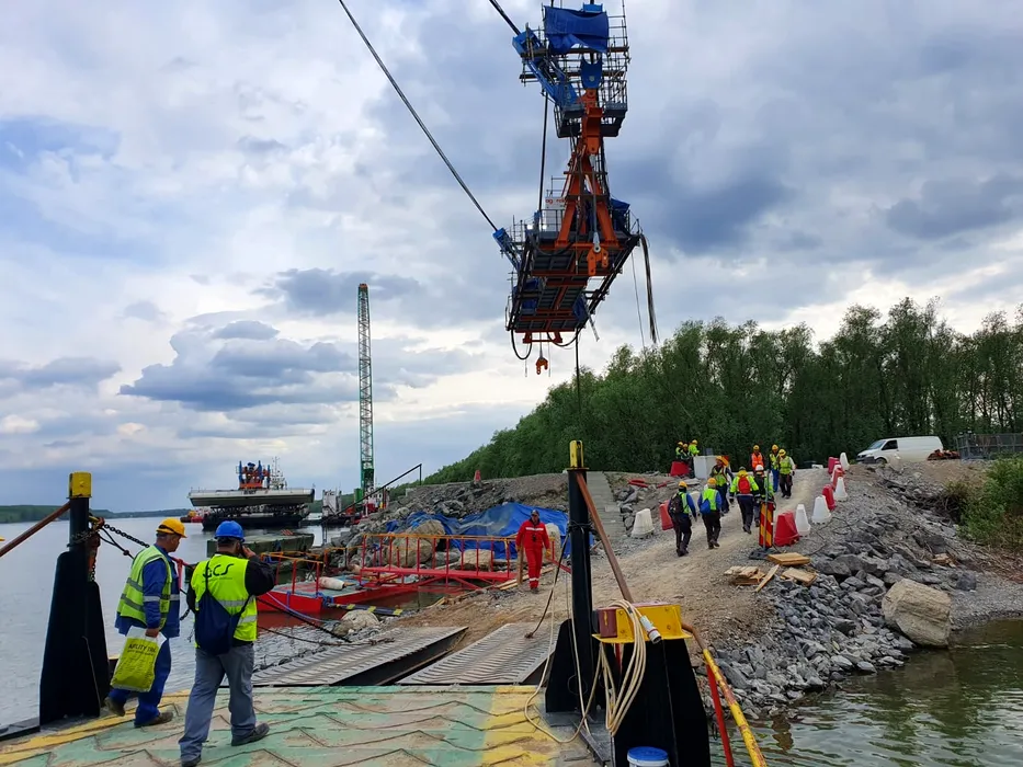 GALERIE FOTO | Imagini spectaculoase cu cel mai mare pod din România și al treilea din Europa. Cum se montează tablierul la „Golden Gate” de Brăila