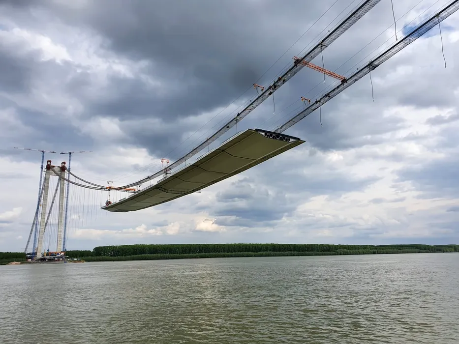 GALERIE FOTO | Imagini spectaculoase cu cel mai mare pod din România și al treilea din Europa. Cum se montează tablierul la „Golden Gate” de Brăila