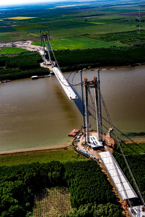 GALERIE FOTO | Imagini spectaculoase cu cel mai mare pod din România și al treilea din Europa. „Golden Gate” de Brăila a prins contur