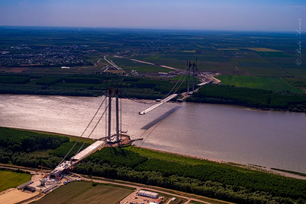 GALERIE FOTO | Imagini spectaculoase cu cel mai mare pod din România și al treilea din Europa. „Golden Gate” de Brăila a prins contur