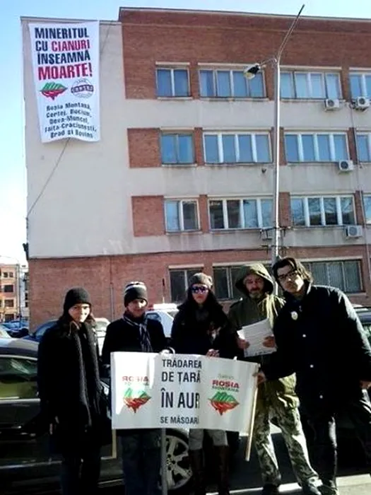 GALERIE FOTO: Nouă tineri protestează pe acoperișul companiei naționale Minvest Deva față de exploatarea aurului pe bază de cianuri