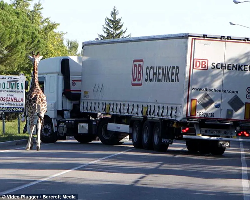 GALERIE FOTO. O girafă a gonit pe străzile unui orășel italian după ce a fugit de la circ