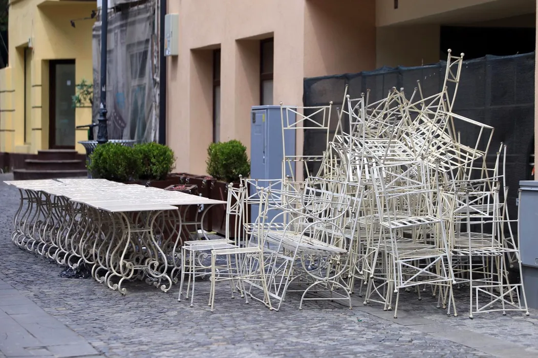 GALERIE FOTO. Pregătirile sunt în toi în Centrul Vechi. Ce fac angajații cu două zile înainte de redeschiderea teraselor