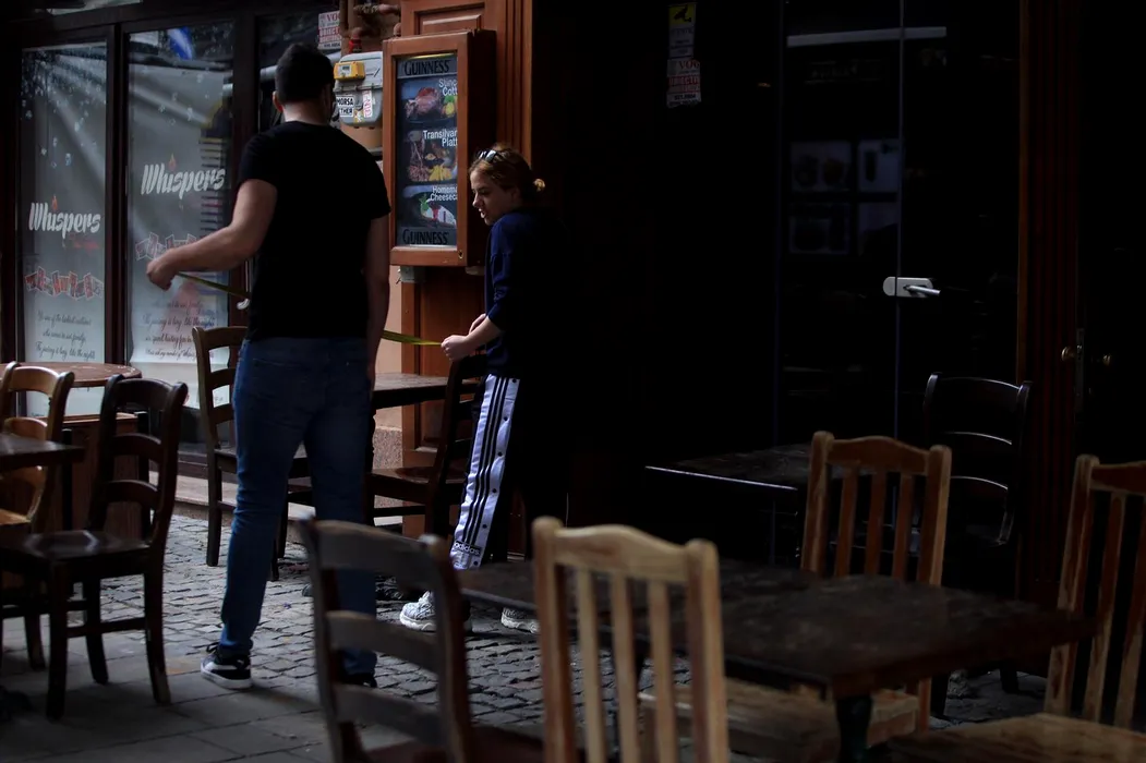 GALERIE FOTO. Pregătirile sunt în toi în Centrul Vechi. Ce fac angajații cu două zile înainte de redeschiderea teraselor