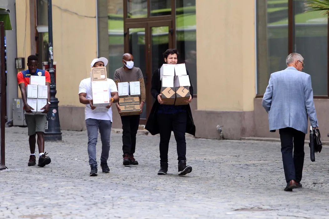 GALERIE FOTO. Pregătirile sunt în toi în Centrul Vechi. Ce fac angajații cu două zile înainte de redeschiderea teraselor