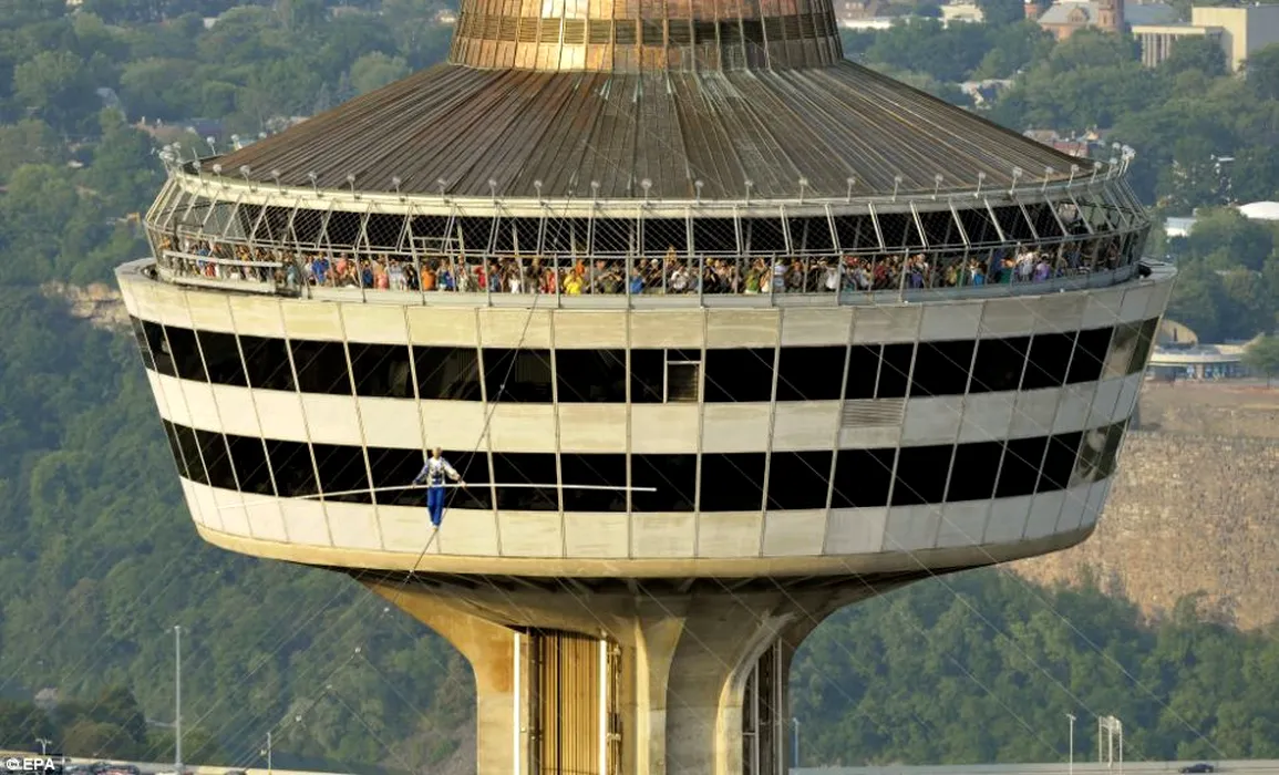 GALERIE FOTO. „Prințul aerului” traversează cascada Niagara pe frânghie, la 68 de ani