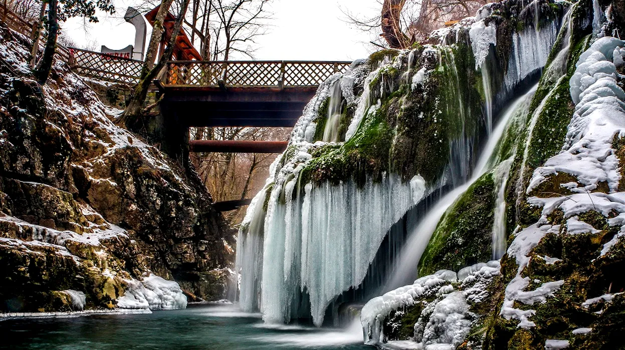 Galerie FOTO spectaculoasă cu Cascada Bigăr. Una dintre cele mai frumoase cascade din lume a înghețat