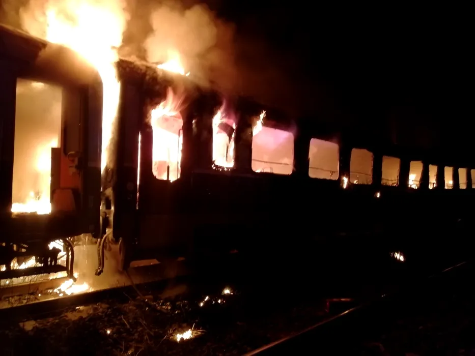 GALERIE FOTO și VIDEO. Tren în flăcări în județul Brașov