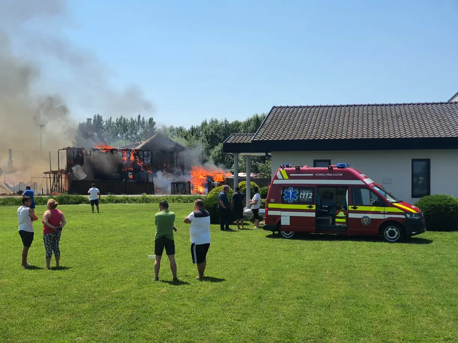 GALERIE FOTO. Un restaurant din Timiș a ars ca o torță. Mai multe persoane au suferit atacuri de panică