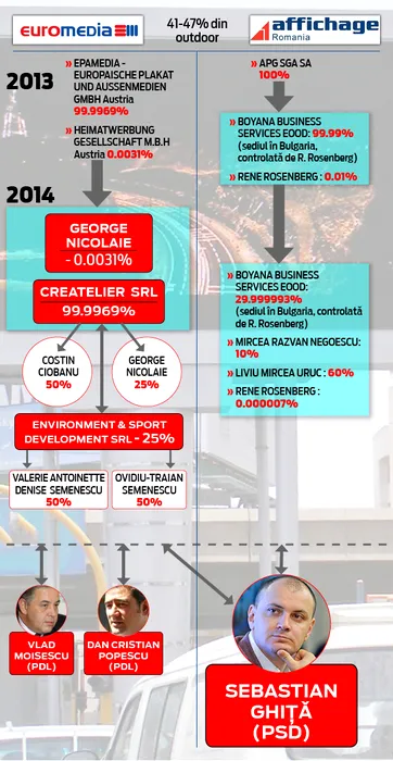 Gândul a scris, în octombrie 2014, despre cine controla panotajul în campania electorală: În țara românilor mândri, Sebastian Ghiță îl face afiș pe Victor Ponta