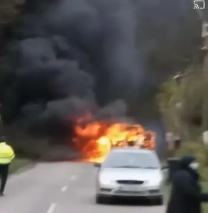 GÂNDUL LIVE. Un microbuz a fost mistuit de flăcări pe şoseaua Hunedoara – Teliucu Inferior. Ce s-a întâmplat cu șoferul