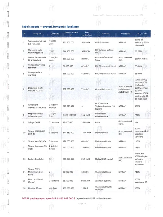 GALERIE FOTO: Gândul publică raportul SAFE privind achizițiile de armament. 10 din cele aproape 17 mld. de euro vor pleca spre Franța și Germania. Cel mai mare contract de achiziție este cu nemții de la Rheinmetall, de aproape 6 miliarde de euro. Vezi lista completă a achizițiilor