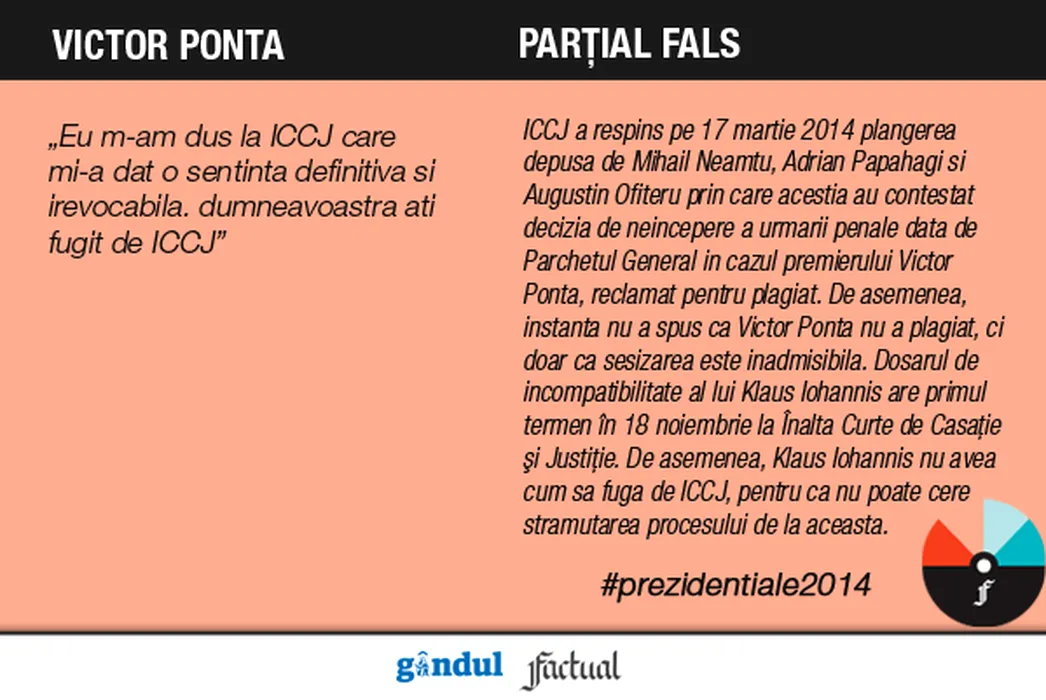 Gândul și Factual.ro au făcut BAROMETRUL ADEVĂRULUI în dezbaterea Ponta-Iohannis. Victor Ponta: Înalta Curte mi-a dat o sentință definitivă că nu am plagiat – FALS!