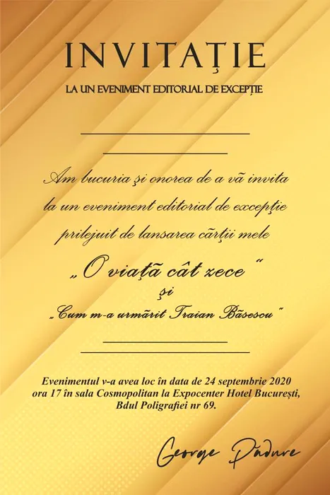George Pădure a lansat cartea ”O viață cât zece – și cum m-a urmărit Traian Băsescu”: ”Mi se pare superficial ca noi, ca popor, să ne mulţumim doar să ne descurcăm”